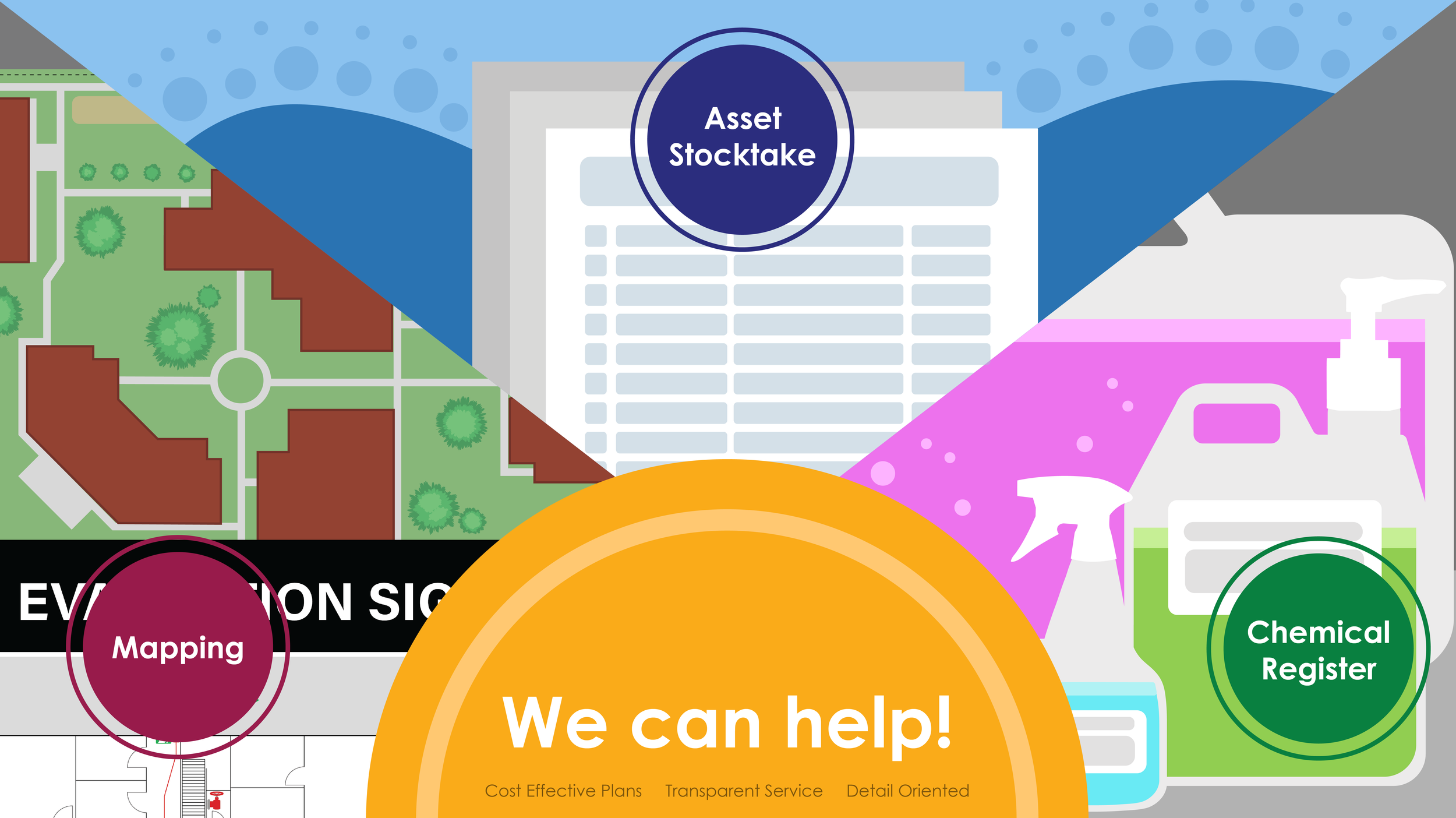 Browse our range of digital products. We develop Evacuation Diagrams, Assembly Area Maps, First Aid & Health Safety Maps, Wayfinding Maps, & Cosmetic Maps.